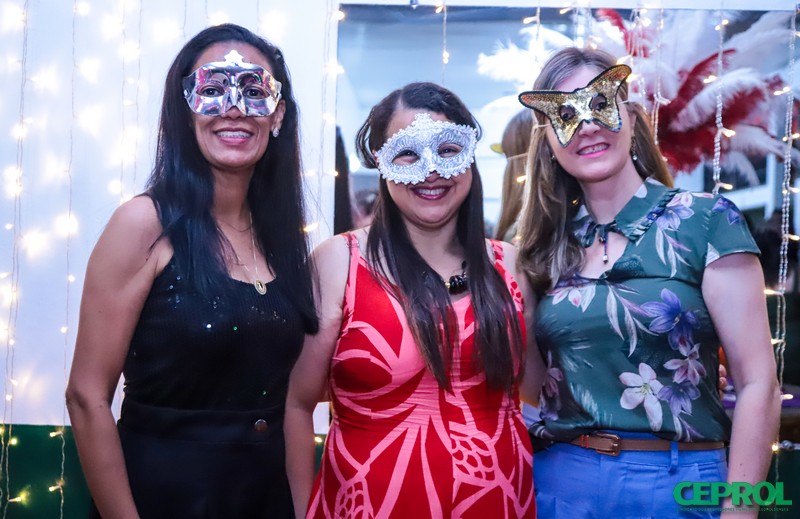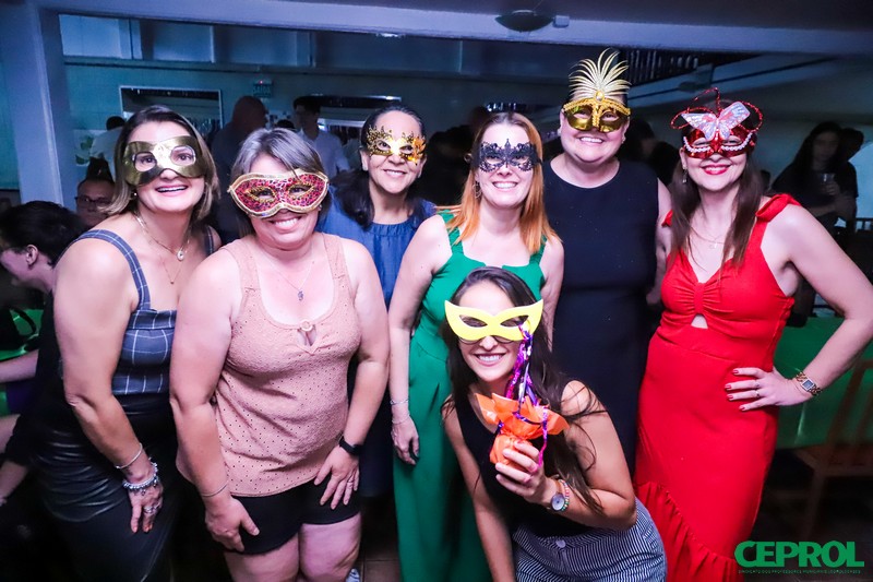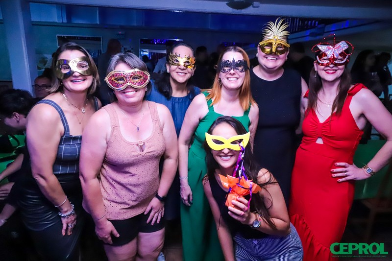 Cada sorriso, cada máscara criativa, cada dança, cada momento especial foi registrado e revela a alegria de estarmos juntas nesta noite merecida de festa 🎭✨