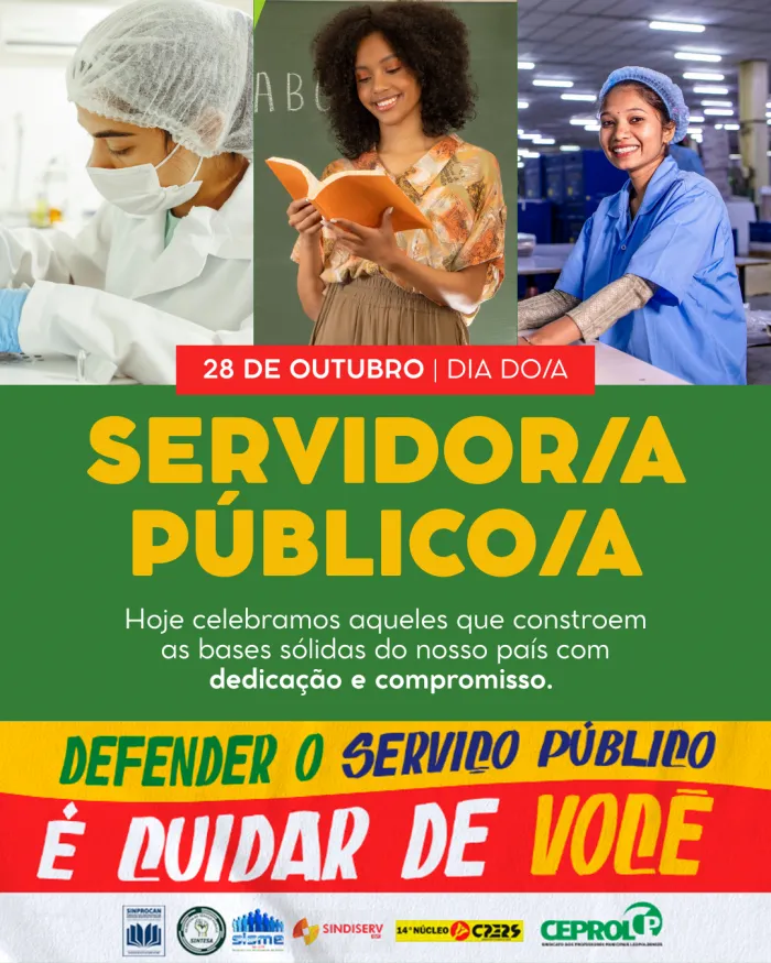 Neste dia, agradecemos o trabalho das servidoras/es que cuidam da população, mesmo enfrentando precarização e muitas vezes sem a estrutura adequada. São a linha de frente que opera as políticas públicas que promovem mais igualdade e oportunidades para todos/as (educação, saúde, assistência, segurança).