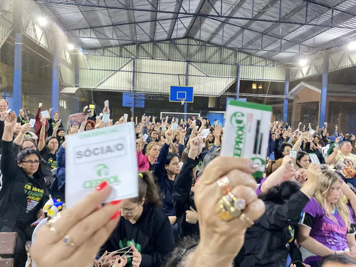 💪🏾Com mãos levantadas e um coro de "parar!", as professoras aprovaram de forma unânime a realização de uma paralisação para o dia 18 de novembro.